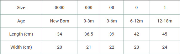| Size | 0000 | 000 | 00 | 0 | 1 |